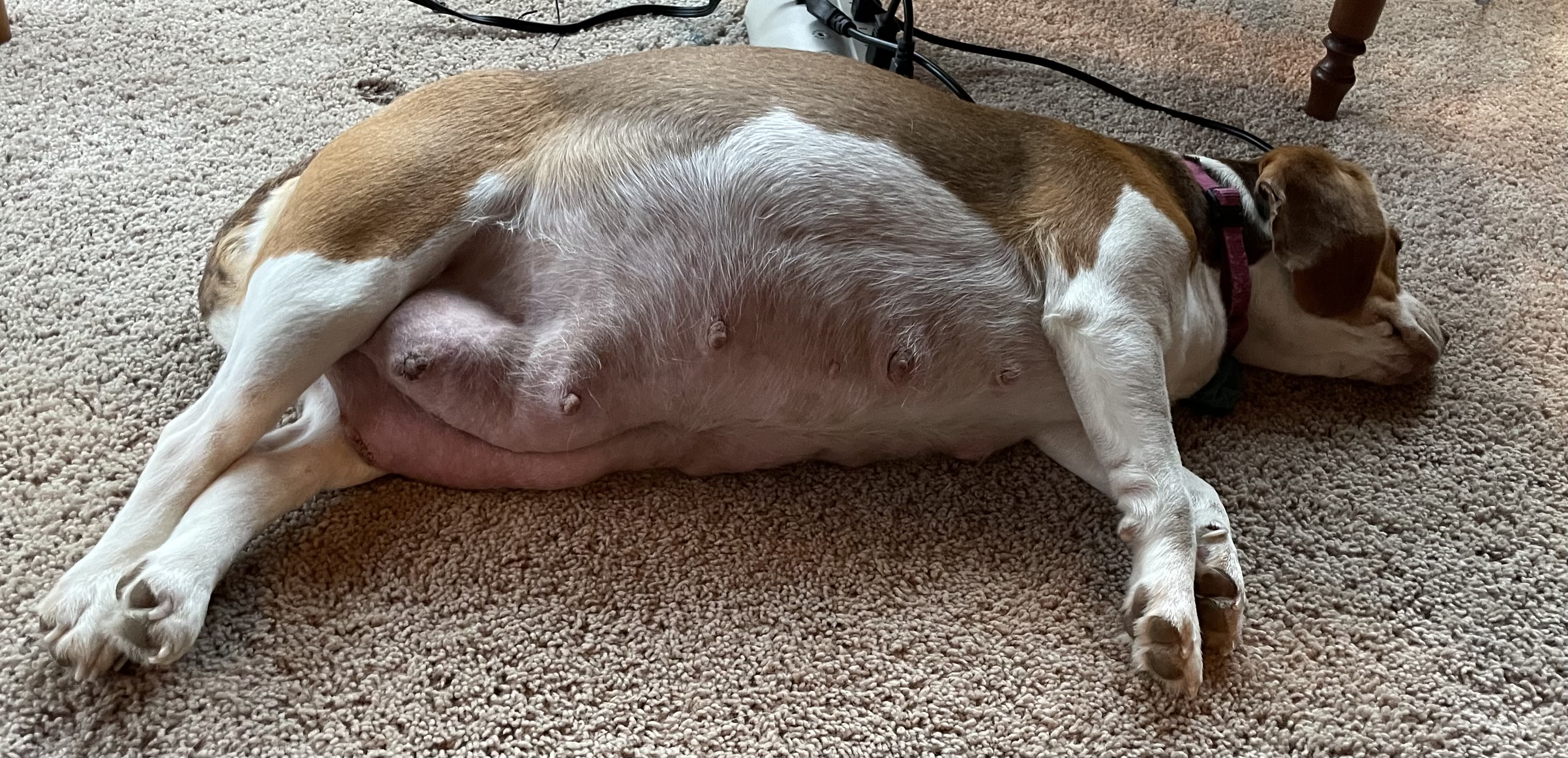 - We started seeing puppy heads and bums pushing on Shelbs’ sides on 7/25.